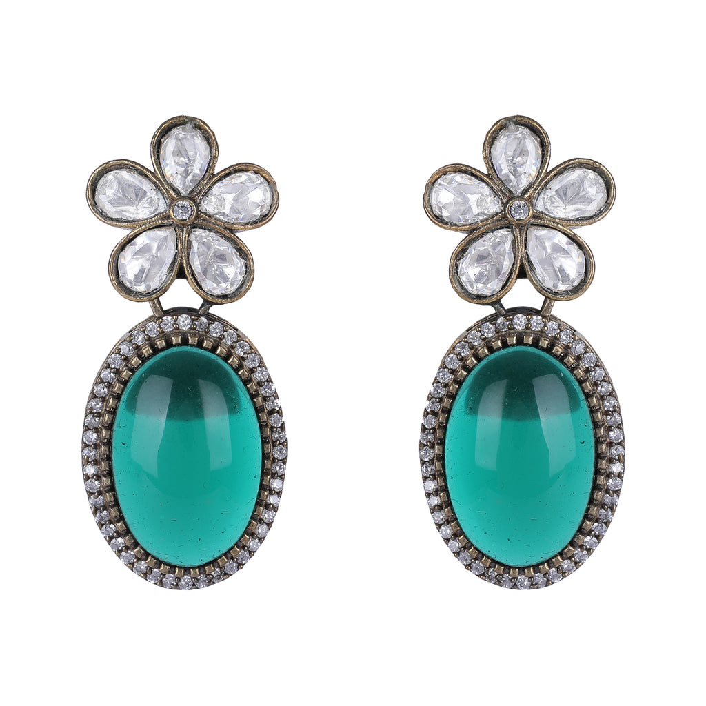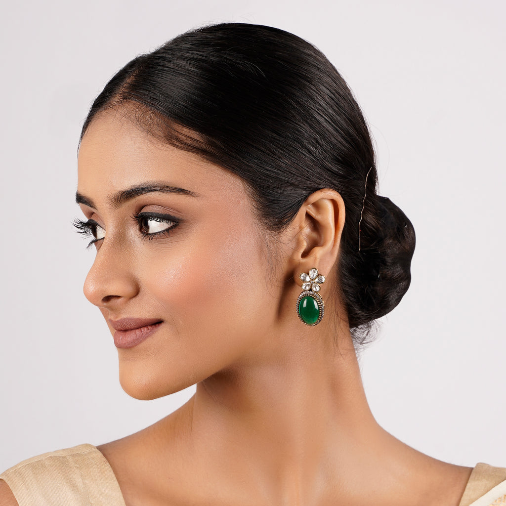 Details Size : Necklace - L23" XW2.5" Earring -L1" XW.05" Stone Setting : Kundan String(s) : Green Onyx Drop(s) : Finish :...