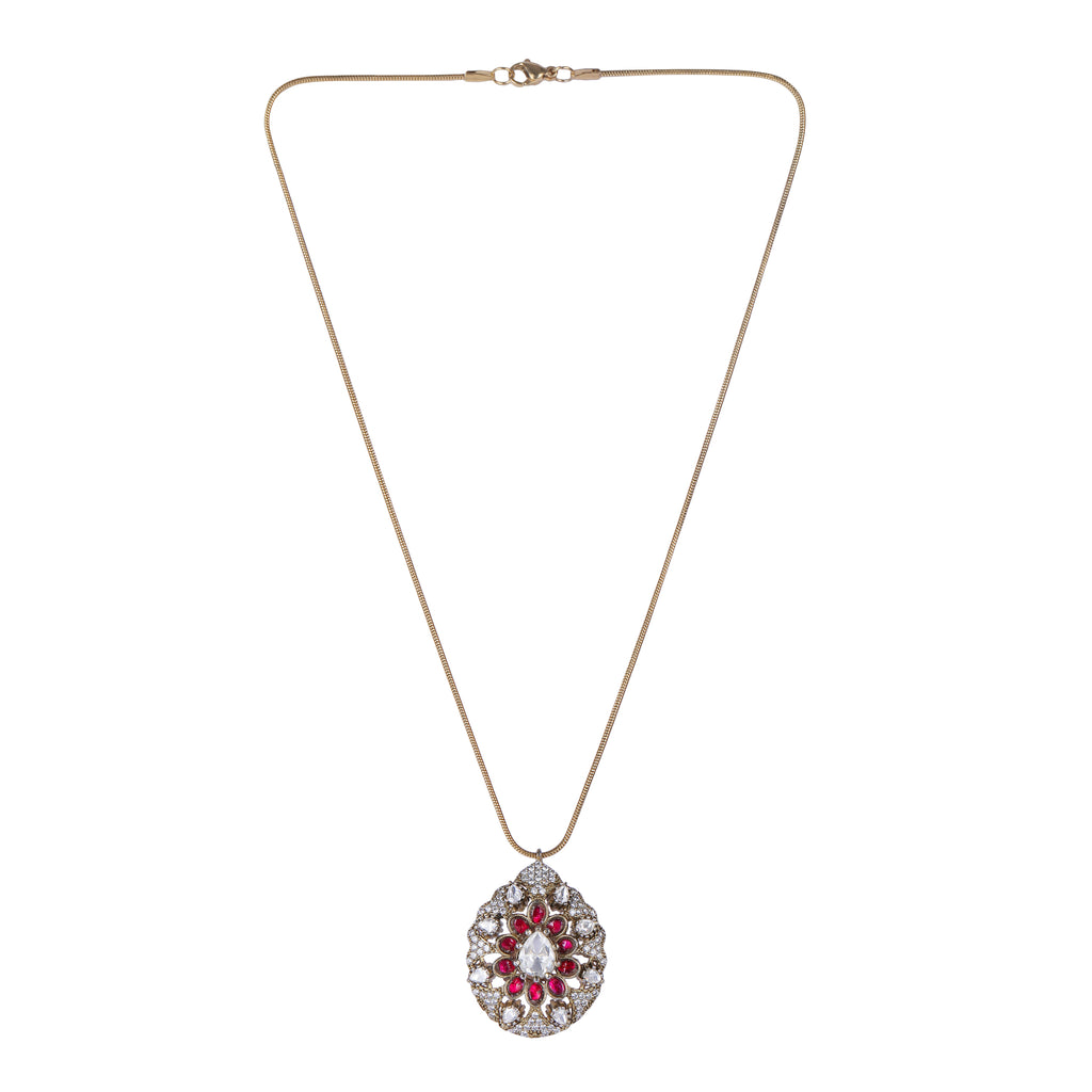 Details Size : Necklace L-18"Xw-1" Stone Setting : zircon String(s) : Chain Drop(s) : Finish : Gold Finding : Hook Link Art Karat Jewelry is plated with 22k gold, studded with precious, semi-precious and natural gemstones. We offer...