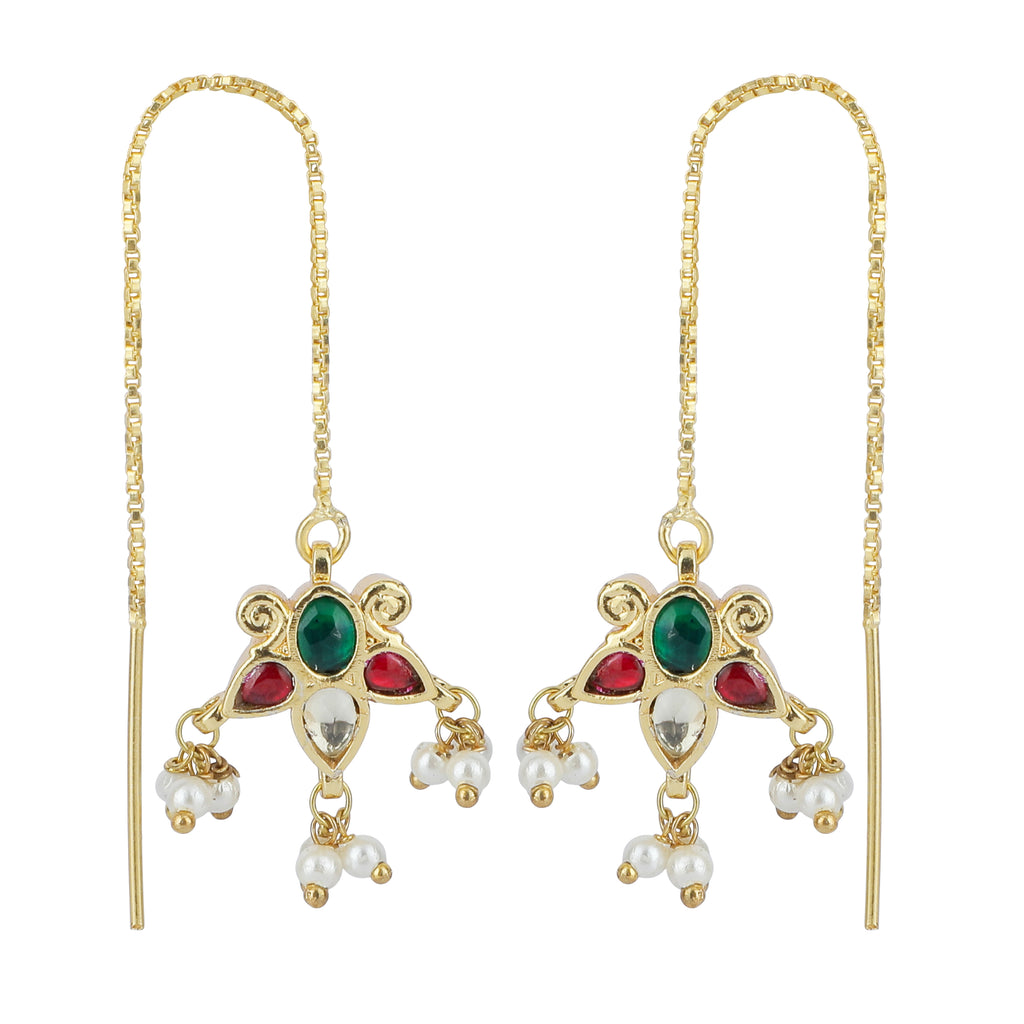 Details Size : Earring L-2.7"Xw-.03" Stone Setting : kundan String(s) : Drop(s) : Gold Bead Finish : Gold Finding : Push back Art Karat Jewelry is plated with 22k gold, studded with precious, semi-precious and natural gemstones. We offer...