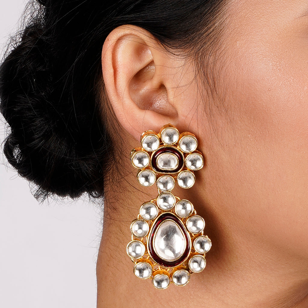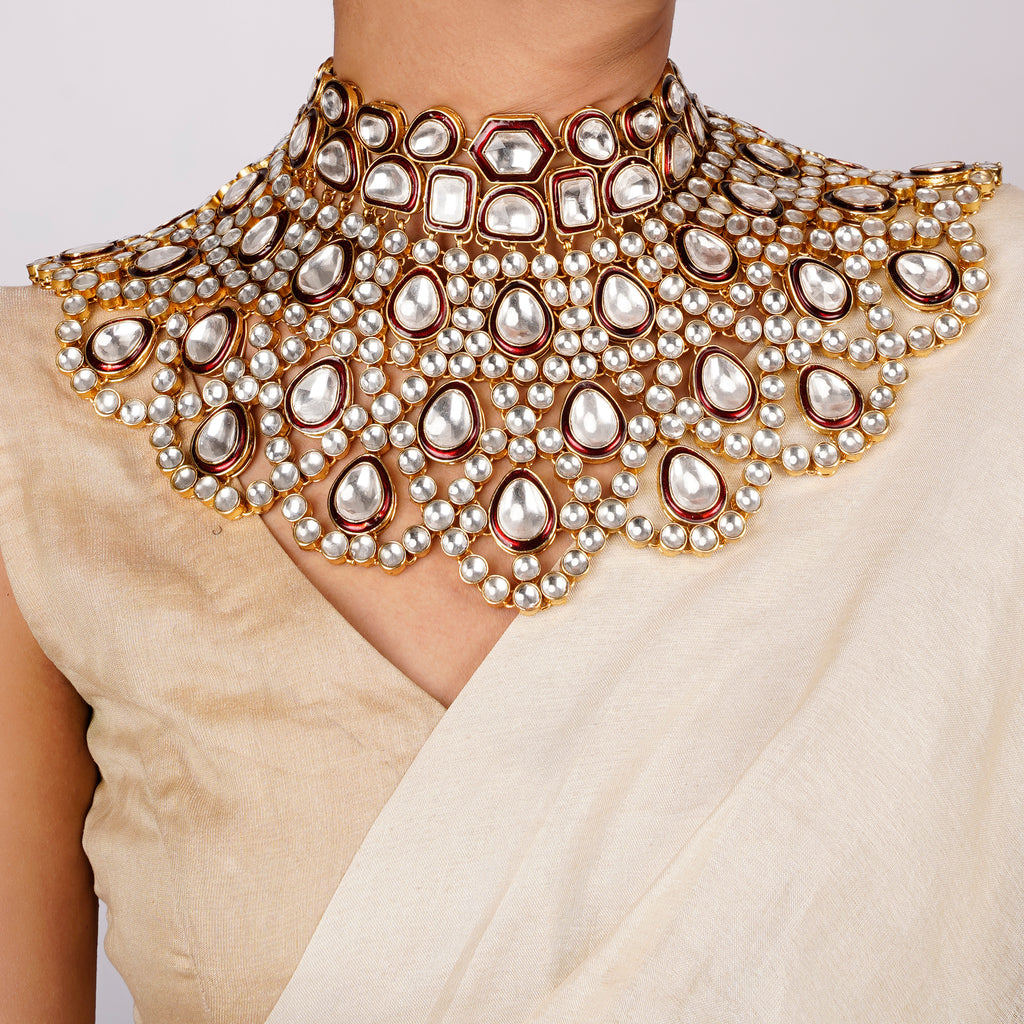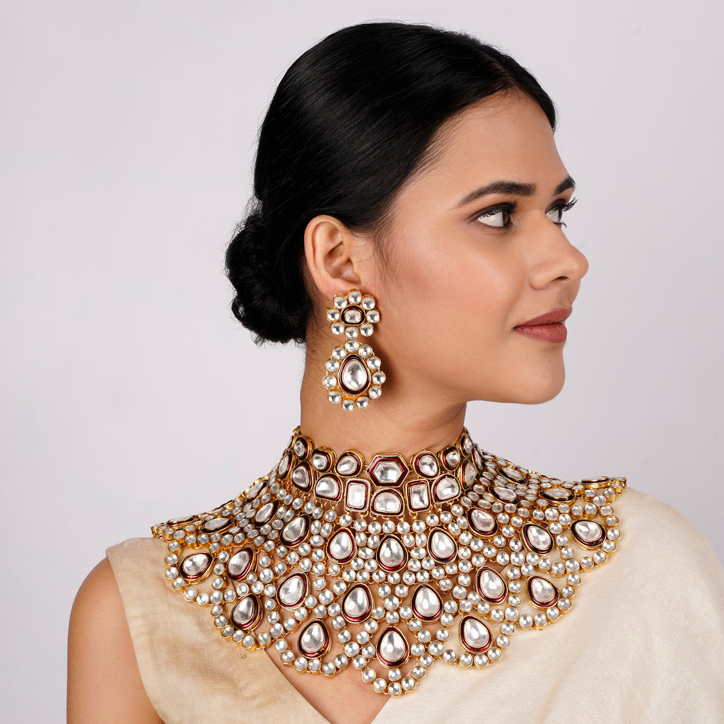 Details Size : Necklace L-11"XW-2" Earring L-2.5"XW-1.2" Stone Setting : Kundan String(s) : Drop(s) : Finish : Gold Finding : Hook Link...
