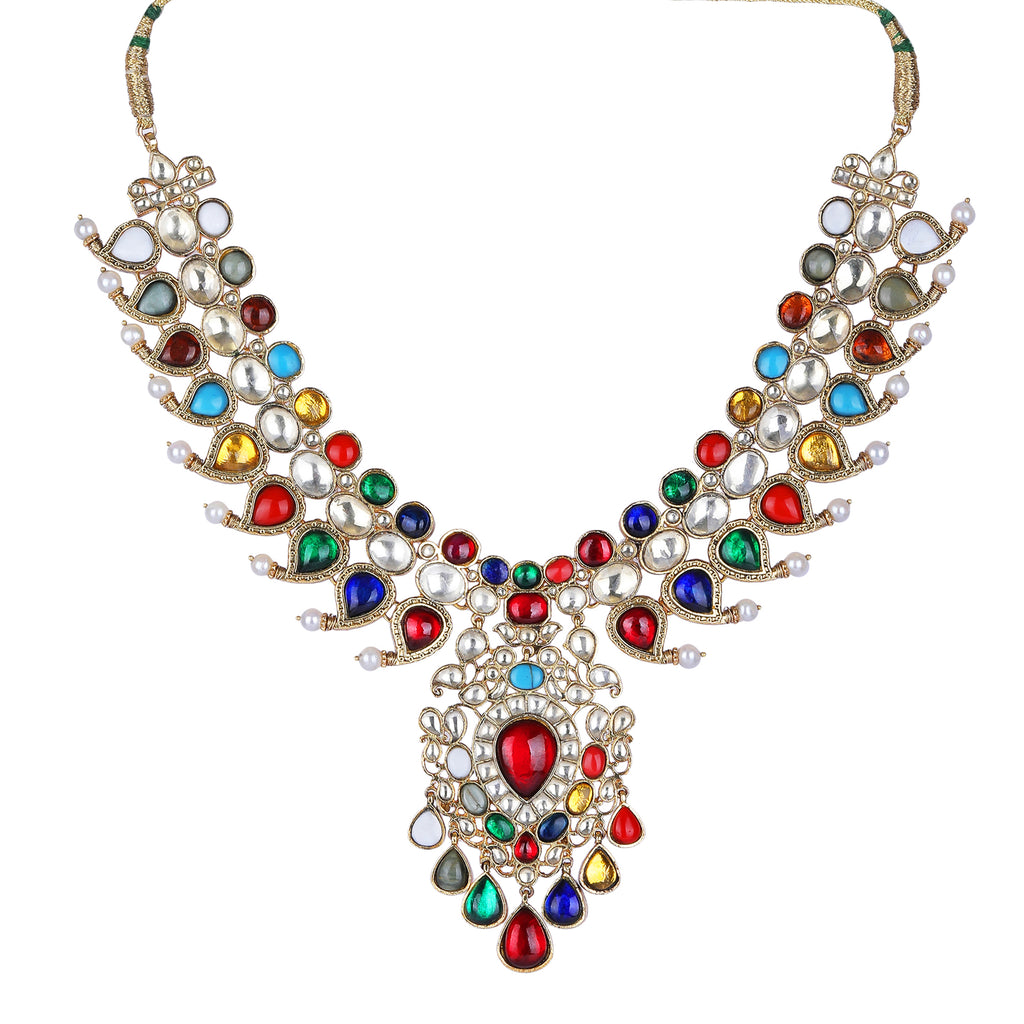 Details Size : Necklace L-11"XW-2" Earring L-2.5"XW-1.2" Stone Setting : Kundan String(s) : Drop(s) : Finish : Gold Finding : Hook Link...