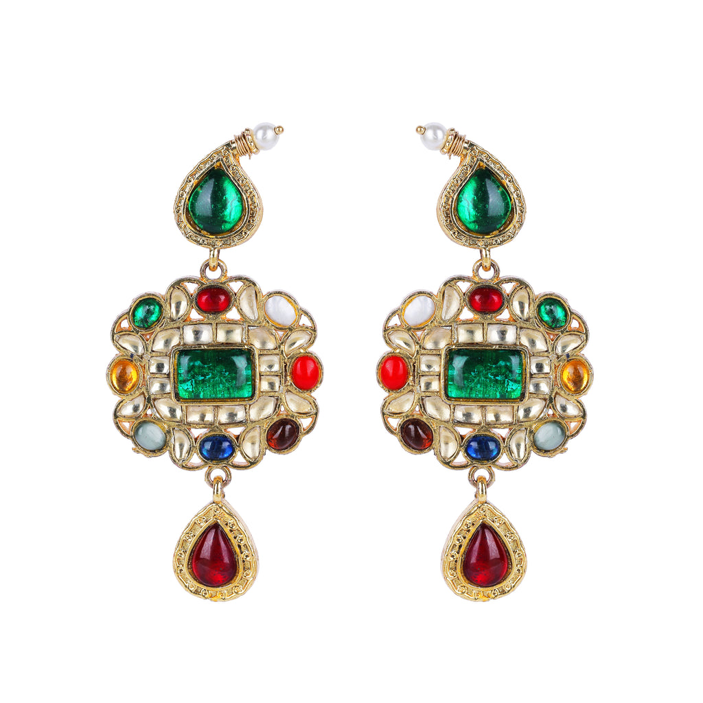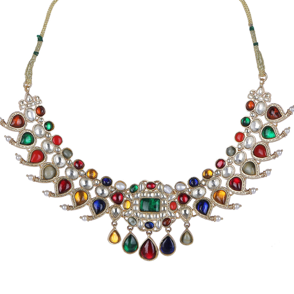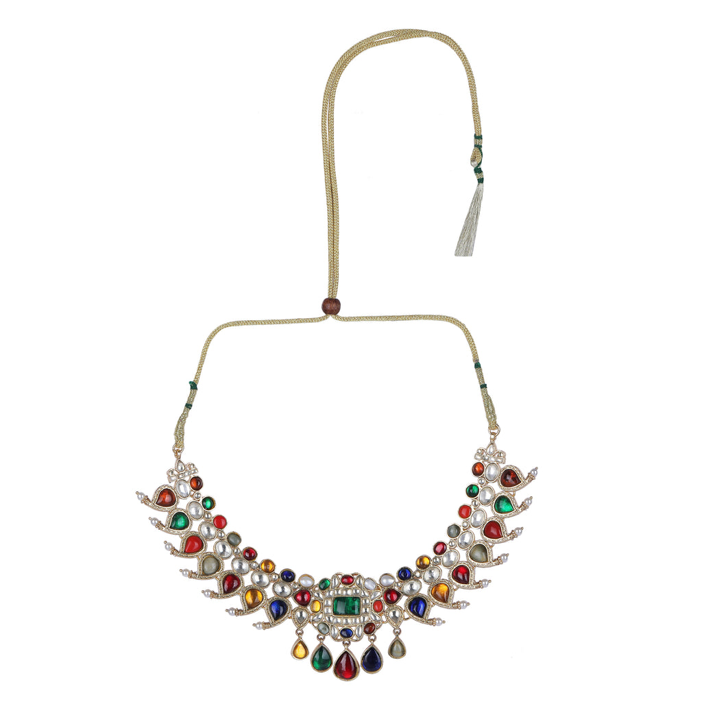 Details Size : Necklace L-16"XW-5.2" Earring L-2.6"XW-1.3" Stone Setting : Kundan String(s) : Drop(s) : Finish : Gold Finding : Dori &...
