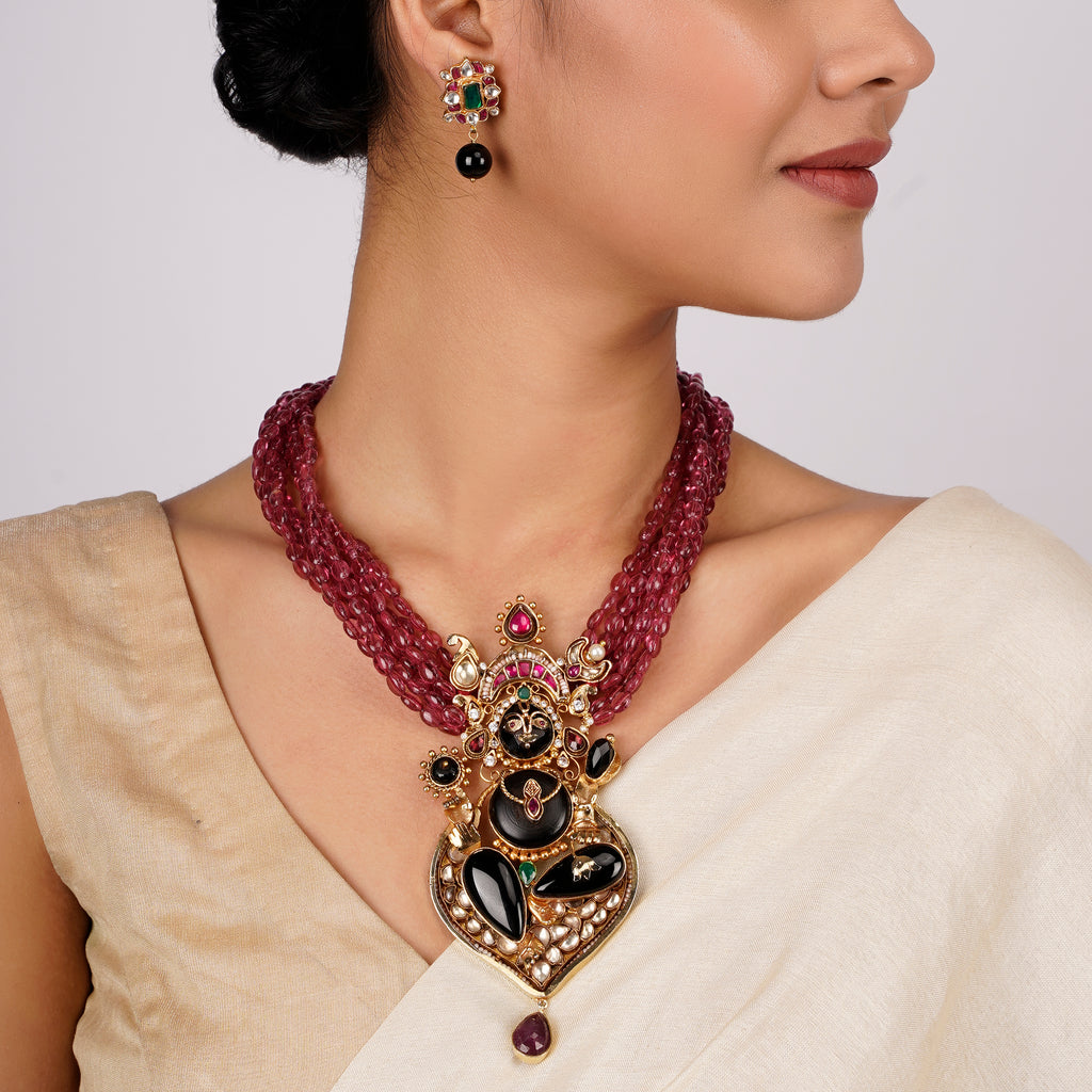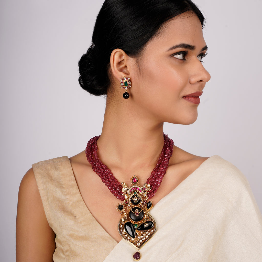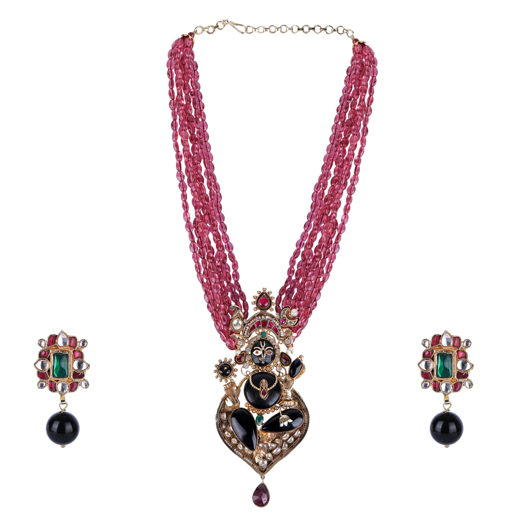 Details Size : Necklace L-18"XW-4" Earring L-4"XW-1" Stone Setting : Moissanite String(s) : Drop(s) : Tourmaline Finish : Gold Finding : Dori...