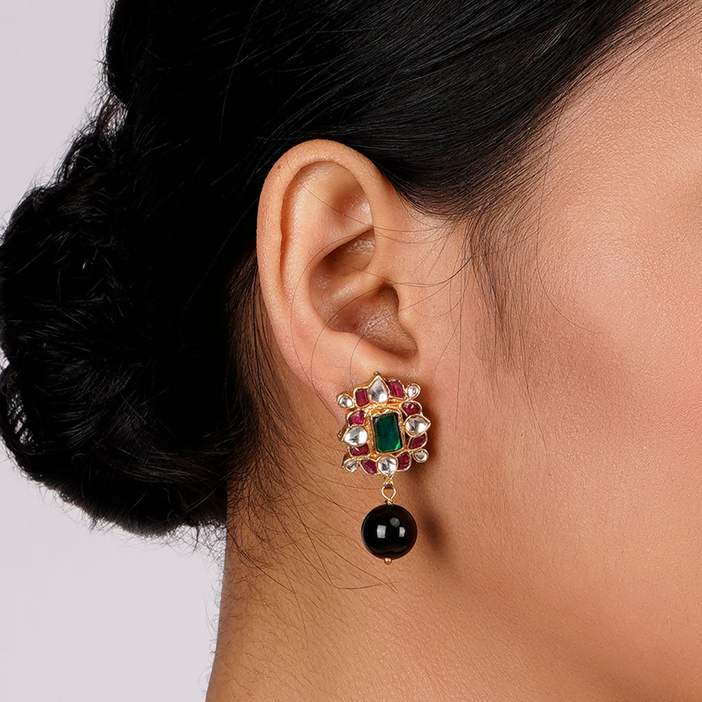 Details Size : Necklace L-16"XW-5.2" Earring L-2.6"XW-1.3" Stone Setting : Kundan String(s) : Drop(s) : Finish : Gold Finding : Dori &...