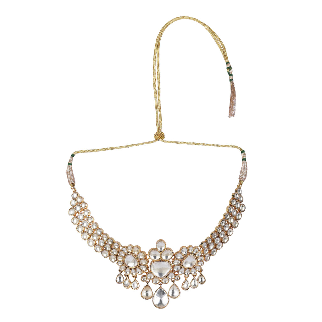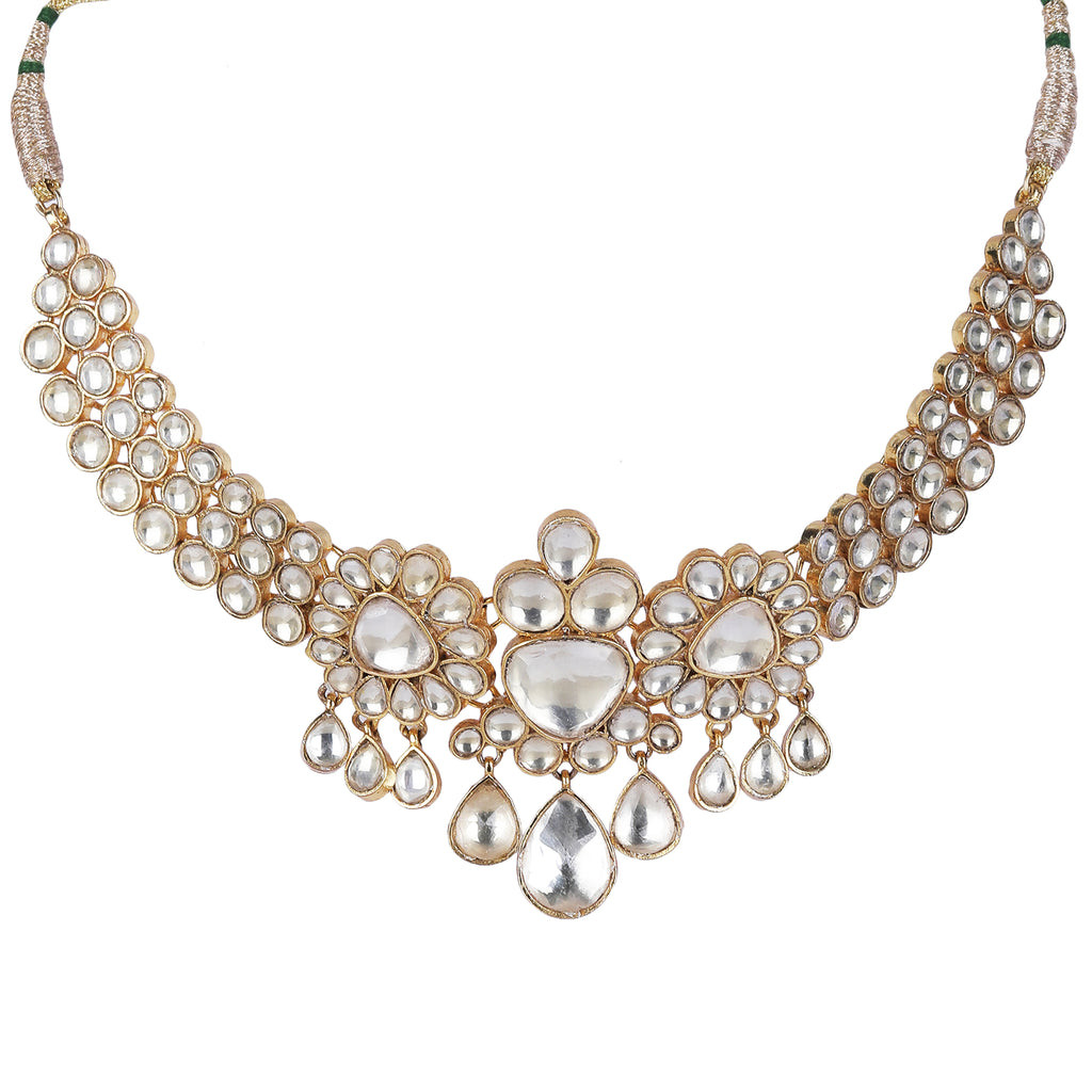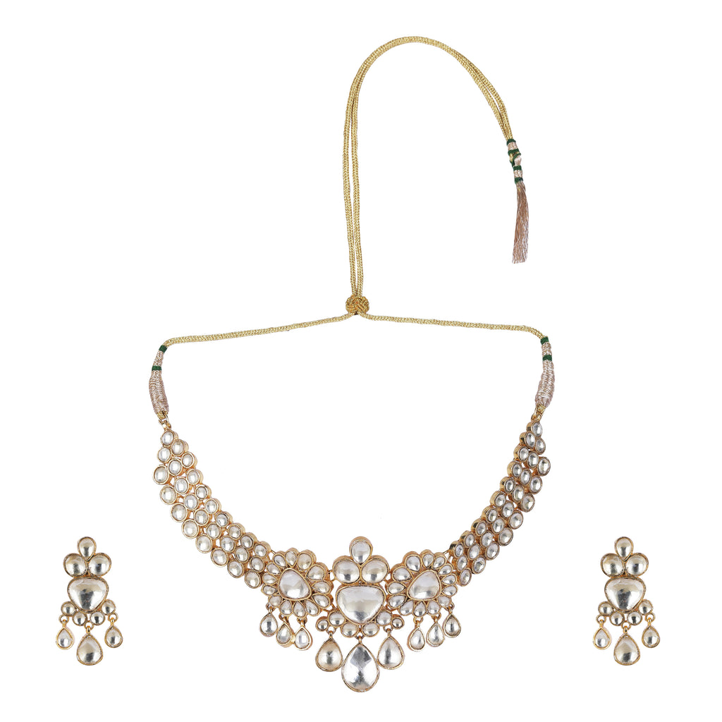 Details Size : Necklace L-11"XW-2" Earring L-2.5"XW-1.2" Stone Setting : Kundan String(s) : Drop(s) : Finish : Gold Finding : Hook Link...