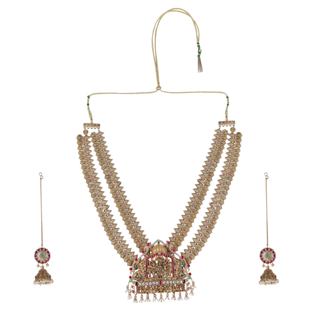 Details Size : Necklace L-16"XW-5.2" Earring L-2.6"XW-1.3" Stone Setting : Kundan String(s) : Drop(s) : Finish : Gold Finding : Dori &...