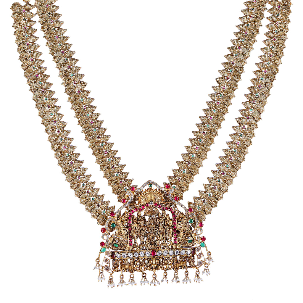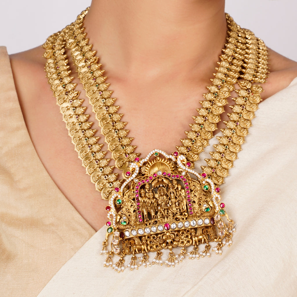 Details Size : Necklace L-11"XW-2" Earring L-2.5"XW-1.2" Stone Setting : Kundan String(s) : Drop(s) : Finish : Gold Finding : Hook Link...