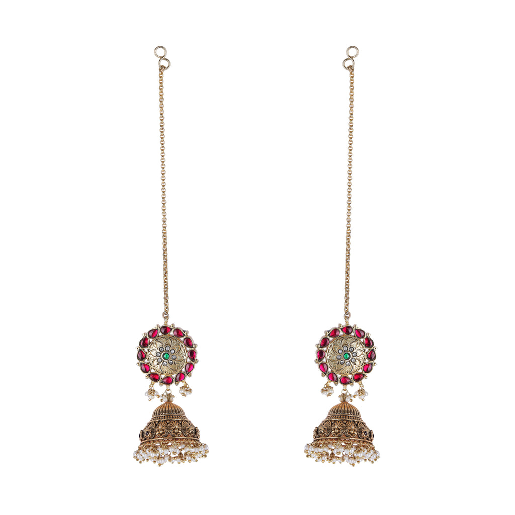 Details Size : Tikka L-4.2"XW- 2.2" Stone Setting : Kundan String(s) : Drop(s) : Finish : Gold Finding : Hook Link &...